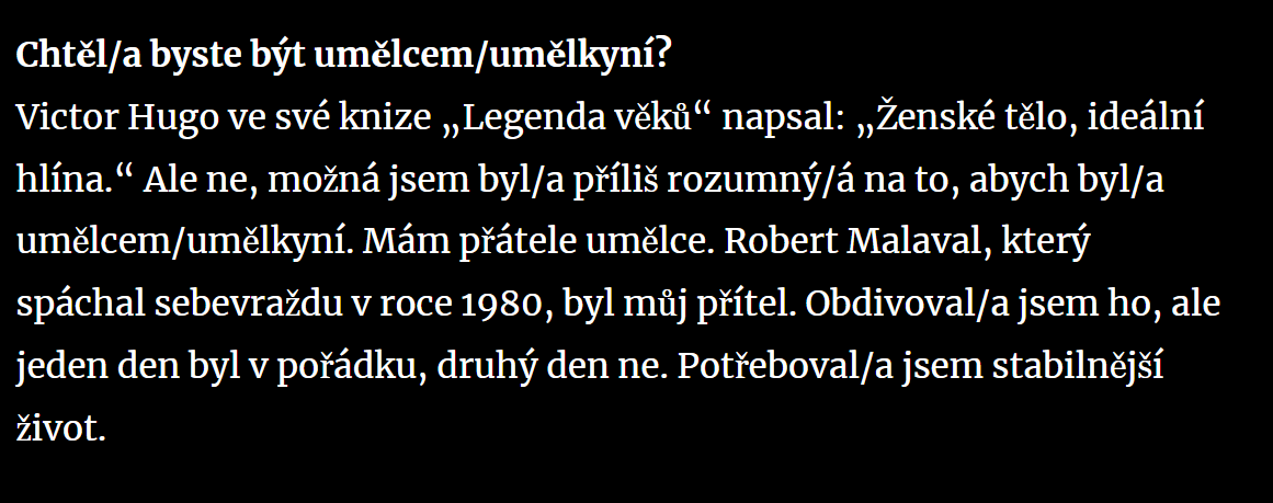 Článek prý popisuje chirurga jako mediálně zdatného a přidá citát připsaný Victor Hugo. Výrok o ženském těle jako „ideální hlíně“. Zní to jako ozdoba.